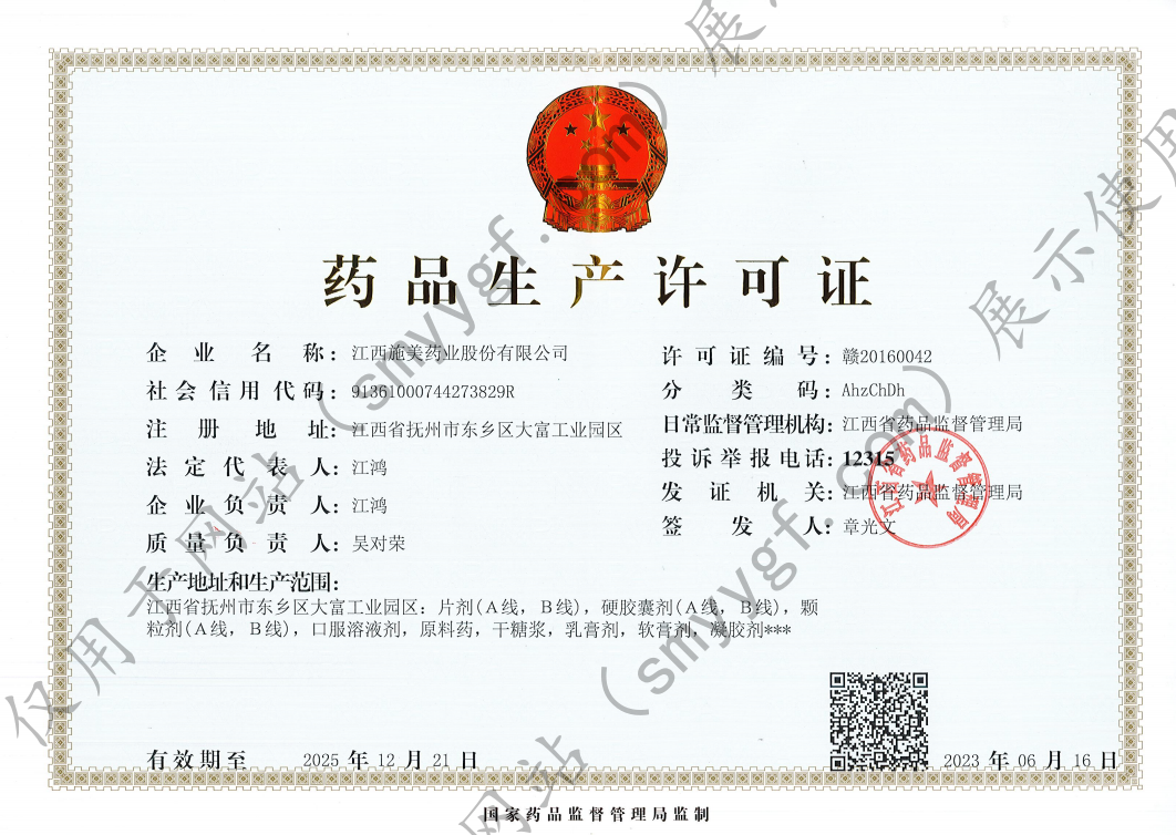 贛ICP備2021001468號-1 | 營業(yè)執(zhí)照 | 藥品生產(chǎn)許可證 | 互聯(lián)網(wǎng)藥品信息服務(wù)資格證書