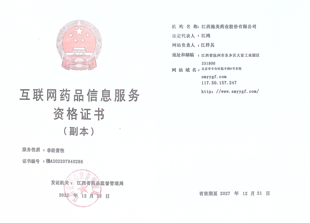 贛ICP備2021001468號-1 | 營業(yè)執(zhí)照 | 藥品生產(chǎn)許可證 | 互聯(lián)網(wǎng)藥品信息服務(wù)資格證書
